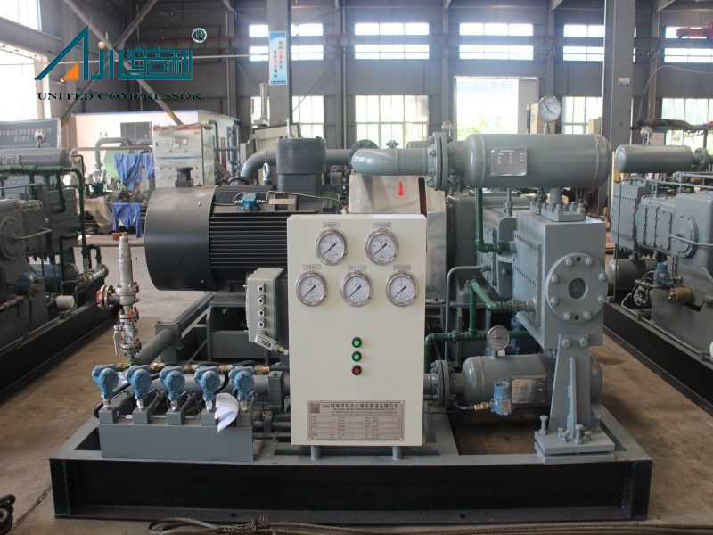 कंप्रेसर डी-टाइप (सममित संतुलन प्रकार), पानी-कूल्ड, तेल-मुक्त स्नेहन, पारस्परिक पिस्टन प्रकार, 2-पंक्ति 3-चरण संपीड़न को अपनाता है, और पूरी इकाई को एक मॉड्यूलर तरीके से आपूर्ति की जाती है।