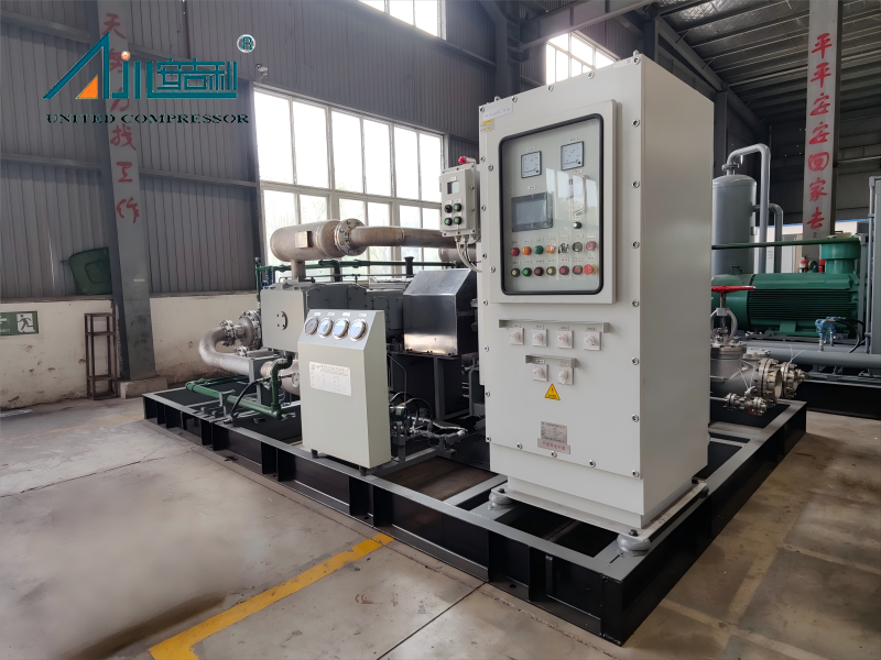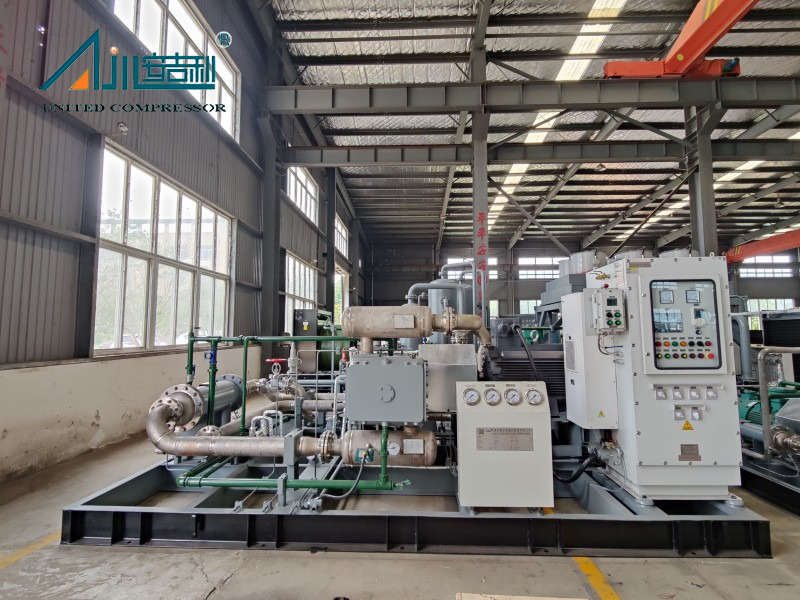 एक महत्वपूर्ण लाभ इसकी कठोर हाइड्रोजन जकड़न डिजाइन है, जो ज्वलनशील हाइड्रोजन माध्यम के रिसाव को रोकने के लिए आवश्यक है। कंप्रेसर एक मल्टी-स्टेज सीलिंग सिस्टम को अपनाता है: पिस्टन रॉड के लिए पीटीएफई पैकिंग रिंग (नाइट्रोजन पर्जिंग पोर्ट्स के साथ), और पीक वाल्व प्लेटों के साथ मेष-संरचित वाल्व (लीकेज रेट, 3 œ, शून्य ऑन-साइट रिसाव के साथ)। इसके अतिरिक्त, संपूर्ण विद्युत प्रणाली (सकारात्मक दबाव विस्फोट संरक्षण के साथ नियंत्रण कैबिनेट सहित) Exdiict4 विस्फोट-प्रूफ मानकों को पूरा करती है, और बाहरी विस्फोटक वातावरण में सुरक्षित संचालन सुनिश्चित करने के लिए दबाव राहत वाल्व और गैस-पानी विभाजक जैसे सुरक्षा उपकरण स्थापित किए जाते हैं।