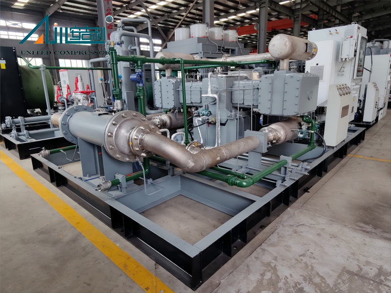 प्रमुख तकनीकी पैरामीटर इसके प्रदर्शन को परिभाषित करते हैं: यह 95 ~ 100% हाइड्रोजन और 0 ~ 5% नाइट्रोजन के मिश्रित माध्यम को संसाधित करता है, जिसमें 17.9m min/min (1074nmγ/h के बराबर, प्रक्रिया की जरूरतों के लिए 3000 ~ 5000nm h/h के लिए स्केलेबल) के नाममात्र वॉल्यूमेट्रिक प्रवाह दर के साथ)। यह 500 ~ 600kpa.a (इनलेट तापमान 5 ~ 20 ℃, पानी के साथ संतृप्त) के इनलेट दबाव पर संचालित होता है और 750kpa.a के निकास दबाव को प्राप्त करता है, एक टर्मिनल गैस आपूर्ति तापमान ≤40 ℃ के साथ। एक 132kW विस्फोट-प्रूफ चर-आवृत्ति मोटर (मॉडल YBBP-355M-8) द्वारा संचालित, इसमें लगभग 3500 × 3000 × 2300 मिमी का समग्र आयाम और लगभग 8T का कुल वजन है, जो परियोजना के आउटडोर स्किड-माउंटेड इंस्टॉलेशन सेटअप में सहज एकीकरण सुनिश्चित करता है।